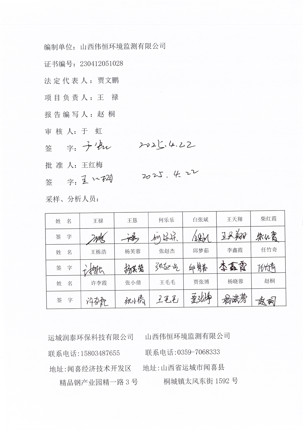 2025年潤泰環(huán)保四月份自行監(jiān)測報(bào)告