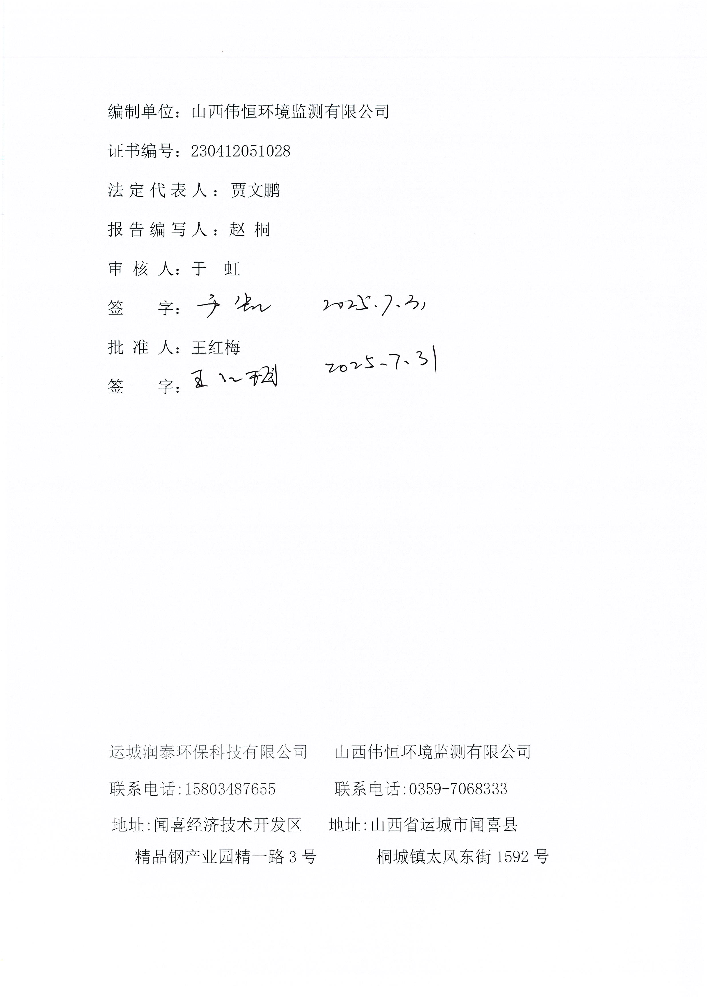 2025年潤泰環(huán)保七月份自行監(jiān)測報告