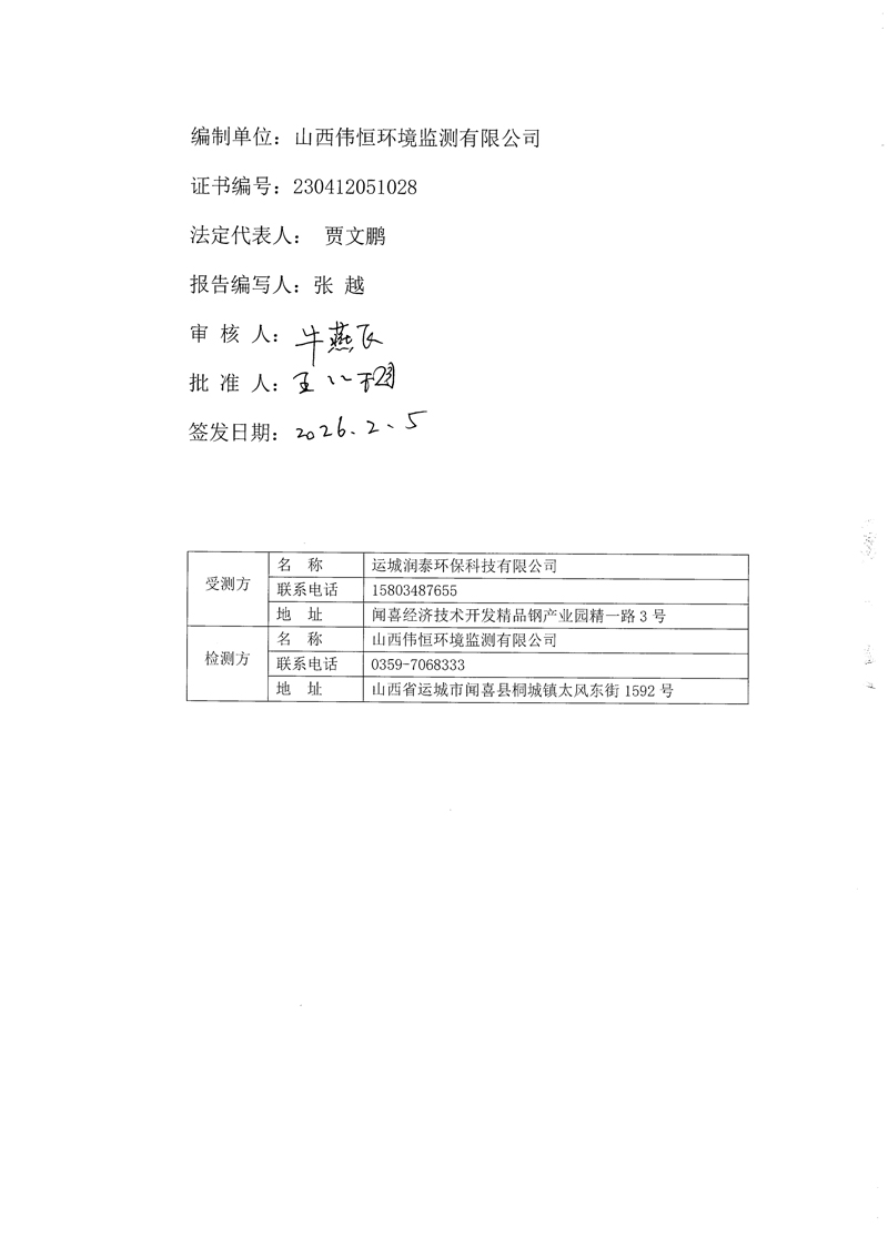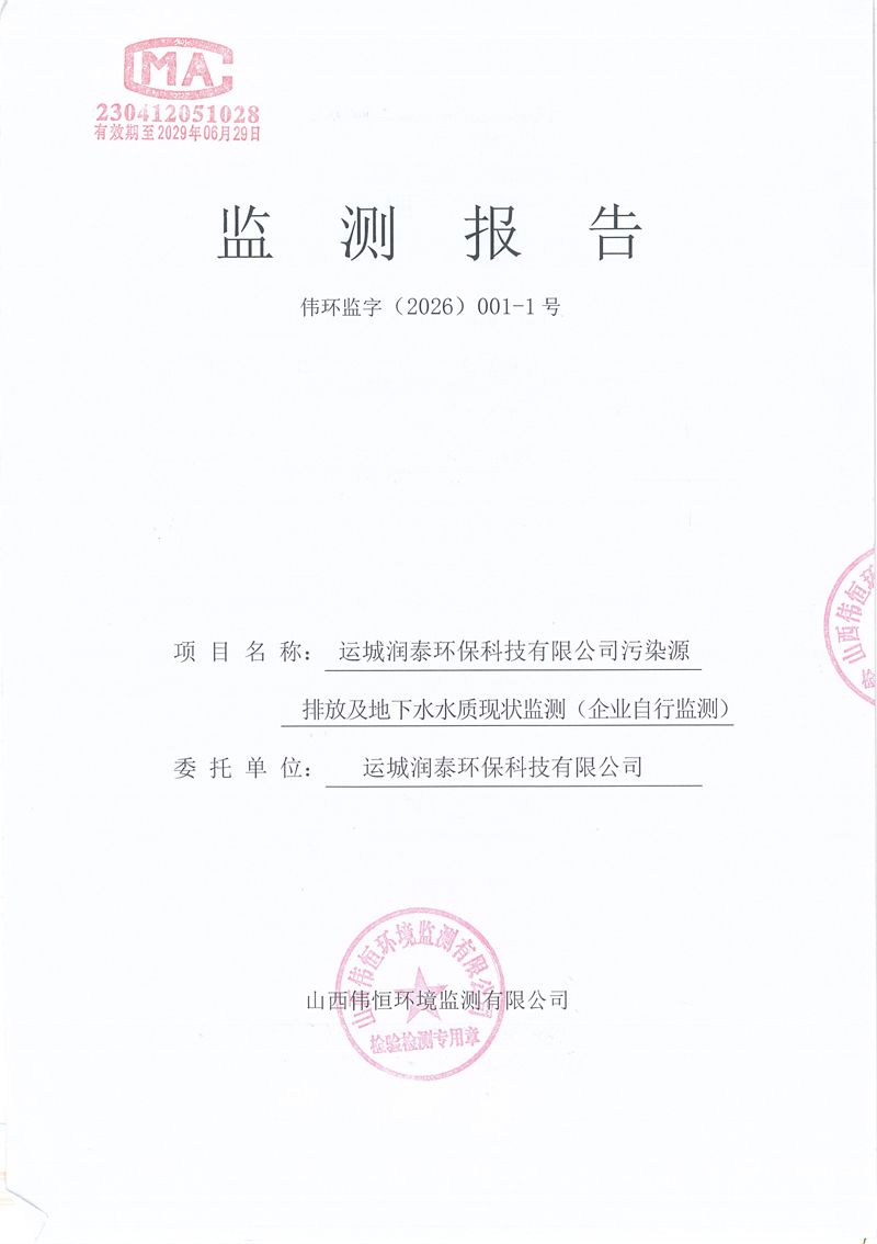 2026年潤泰環(huán)保一月份自行監(jiān)測報告
